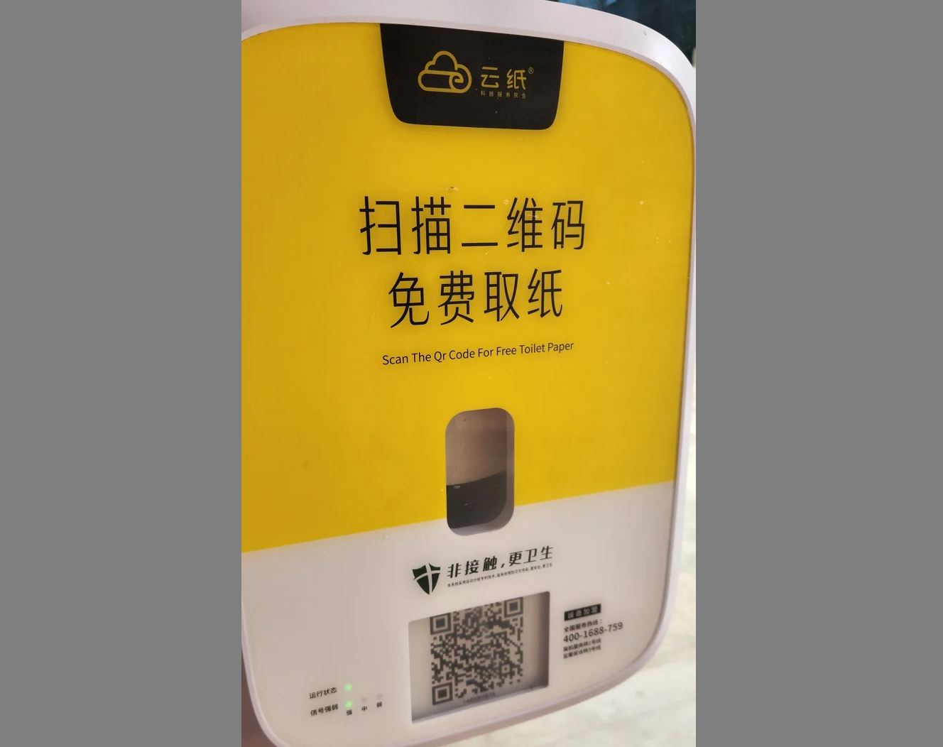 Издание China Insider опубликовало на своей странице в Facebook короткий ролик, который быстро стал вирусным. В нём молодая женщина в общественном туалете сканирует QR-код телефоном, а затем смотрит рекламу на своём устройстве, чтобы активировать выдачу рулона туалетной бумаги из диспенсера. По данным издания, пользователи могут посмотреть рекламу на телефоне или заплатить 0,5 юаня (0,07 доллара США) за каждый рулон туалетной бумаги.