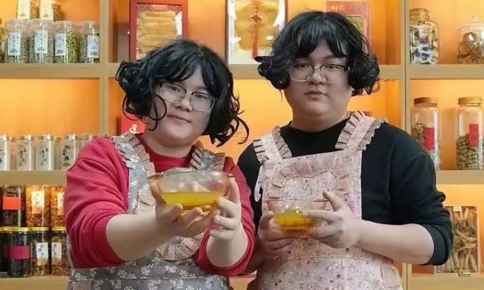 Лян Цайюй и Хэ Сяньшэн, которым чуть за двадцать, владеют магазином фитотерапии в Дунгуане, провинция Гуандун. Хотя оба происходят из семей с многолетним опытом традиционной фитотерапии, им было трудно поднять бизнес на ноги, пока они не начали снимать рекламные ролики для Douyin, китайского аналога TikTok. Заметив их схожесть, Лян убедила мужа сняться в забавных роликах, где они одевались одинаково, чтобы ещё больше подчеркнуть своё сходство. Сегодня эти ролики — главный рекламный материал пары для магазина.