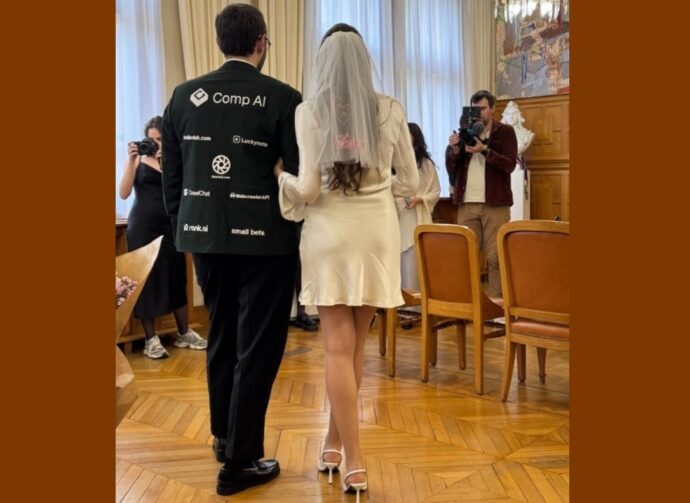 Нищий француз смог покрыть расходы на свою свадьбу, продав рекламу на своем смокинге 26 стартапам и превратившись в живой рекламный щит.
