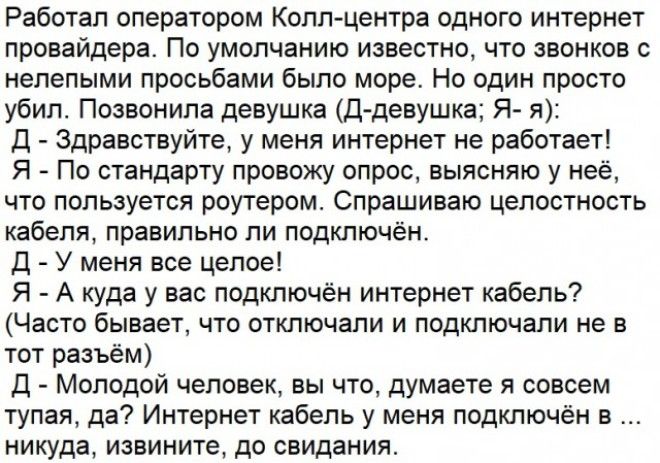 Курьезы Когда клиент всегда… не прав: Курьезные истории о непростых покупателях *** *** ‹ НазадДалее › ИнтереснокурьезыОбществоРАЗВЛЕЧЕНИЯ Минутка веселья: подборка анекдотов для удачного дня Женщина выиграла 154 168 долларов, используя одни и те же лотерейные номера в течение шести лет