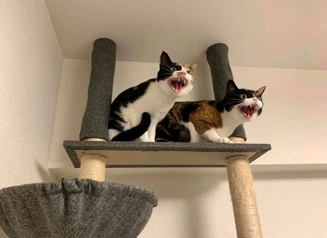По мордам видно, как по-разному коты переживают страх и вообще относятся к одной и той же ситуации. Личности.
