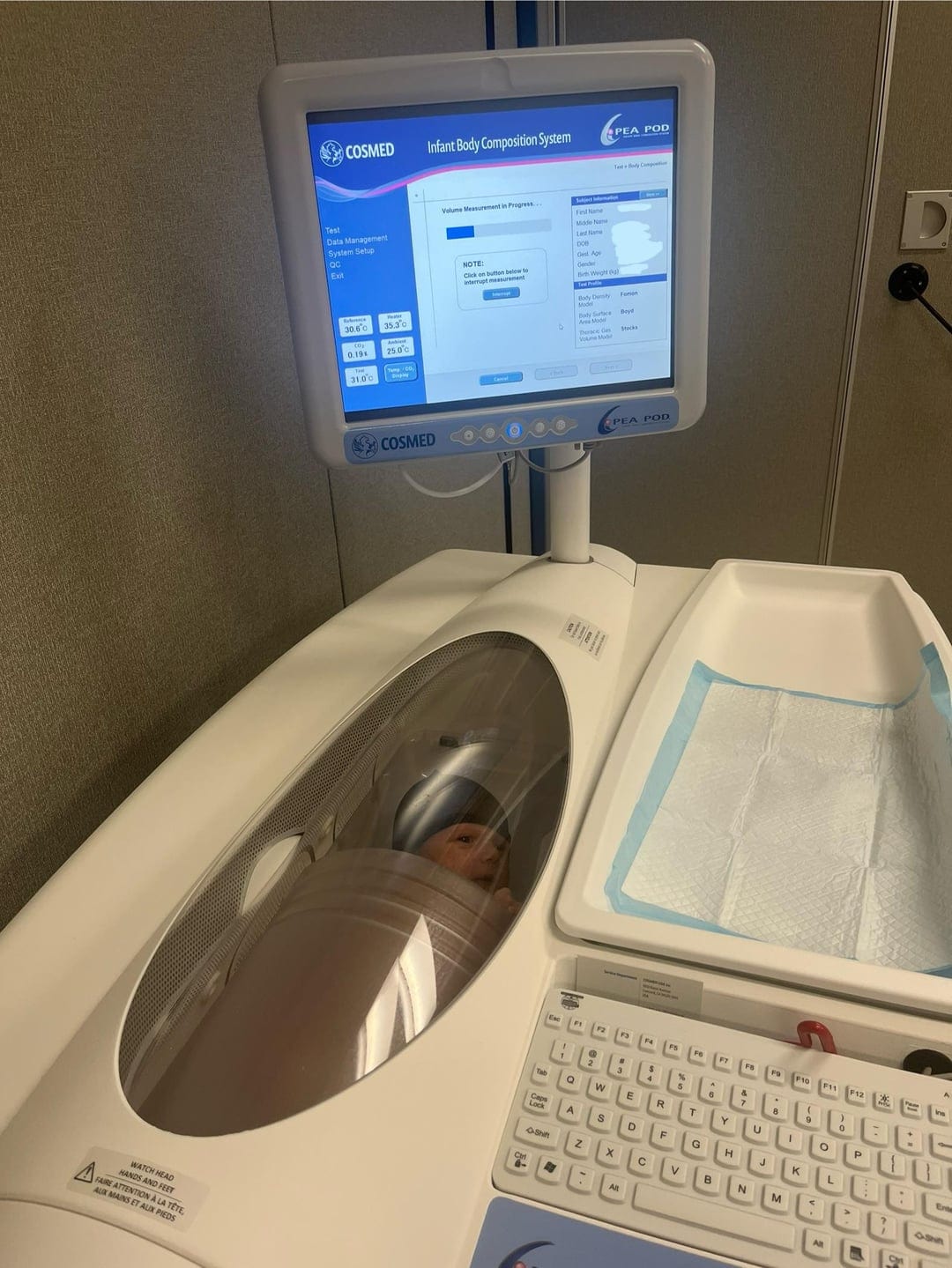Эта штука называется плетизмографический анализатор. Для людей, которые с таким не сталкивались, ситуация выглядит причудливо. Но ребёнка, честное слово, не отправляют в космос.
