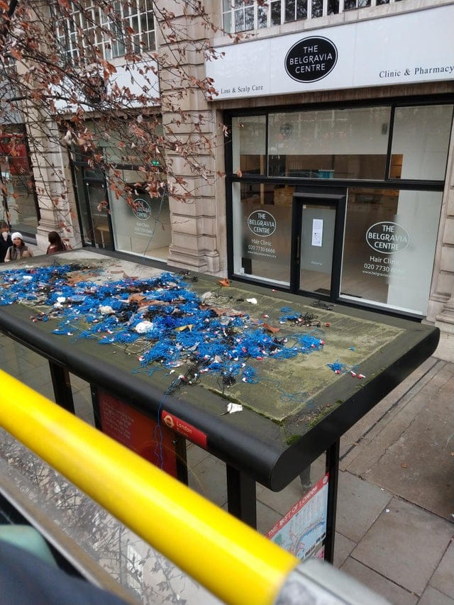 9. Наушники, выброшенные туристами на крышу автобусной остановки в Лондоне