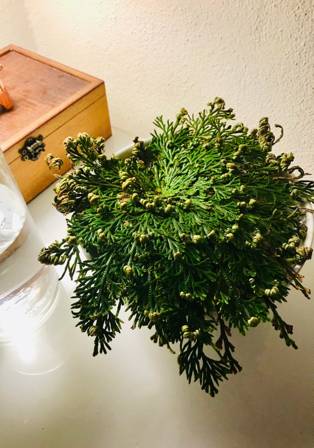 Если его опустить в воду, оно оживёт и зазеленеет.