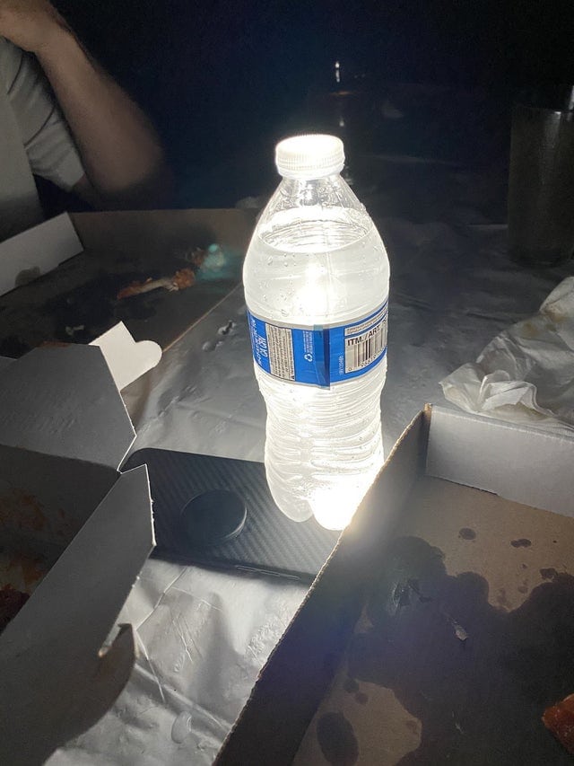 Просто поставьте бутылку с водой на телефон с включённым фонариком.