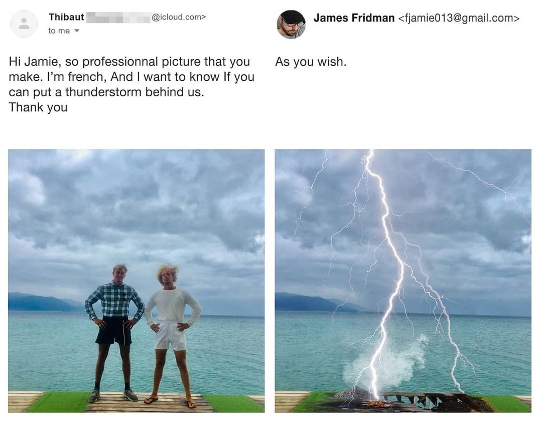 4. Я француз, и я хотел бы знать, сможешь ли ты добавить грозу за нашими спинами? Спасибо