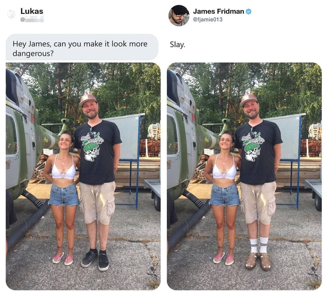 1. Привет, Джеймс. Можешь сделать фото более опасным?