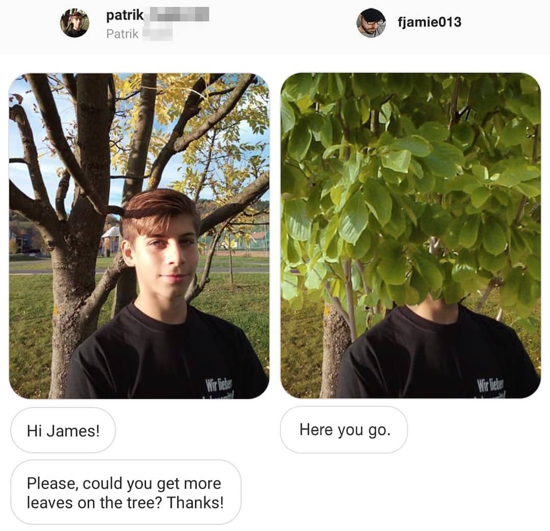 12. Привет, Джеймс! Не мог бы ты добавить на дерево побольше листьев? Спасибо!