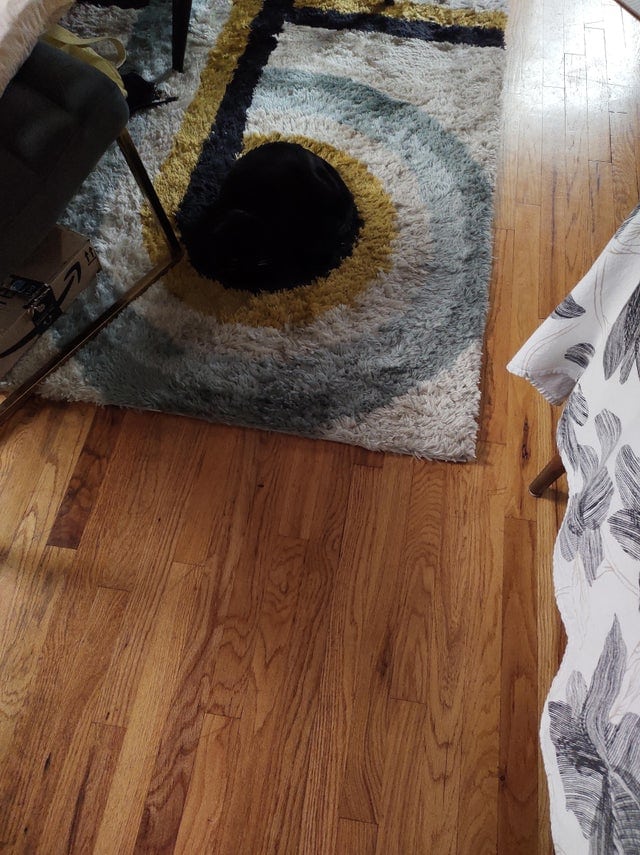 «Мой кот всегда ложится на это тёмное пятнышко на ковре»