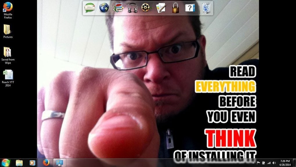 Надпись на экране: «Читай внимательно до того, как ты даже ПОДУМАЕШЬ что-то установить».