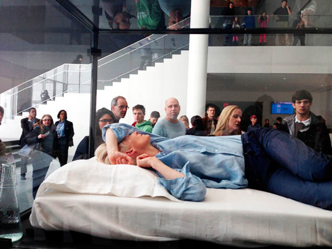4. Актриса любит эксперименты. В 1995 году она присоединилась к перформансу Корнелии Паркер, скандальной британской художницы: следуя ее идее, в течение недели Тильда по 8 часов в день проводила в закрытом стеклянном кубе в Serpentine Gallery. Спустя годы Тильда призналась, что в старости хотела бы умереть таким способом. Подобный перформанс актриса повторила в прошлом году в нью-йоркском музее MoMa. А несколько лет назад на рок-фестивале в Исландии Тильда выступала вместе с группой режиссера Джима Джармуша – но только не пела, а устроила музыкальное представление, читая стихи персидского поэта 13-го века.