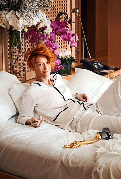 6. Тильда – одна из главных муз современной моды. Раф Симонс, Карл Лагерфельд, Альбер Эльбаз, Хайдер Аккерман, Марко Занини – в любви к этой женщине признаются ведущие дизайнеры мира. Роман Тильды и моды начался в 90-х, когда малоизвестную на тот момент актрису в одной из своих фотосессий снял Карл Лагерфельд.