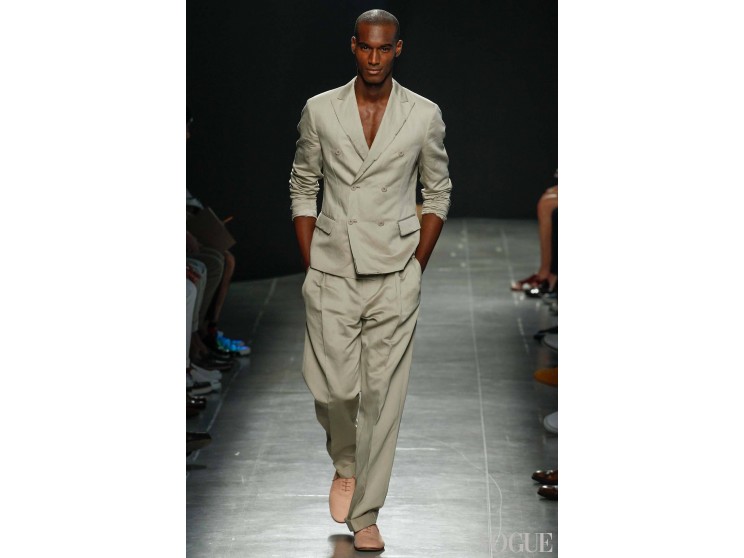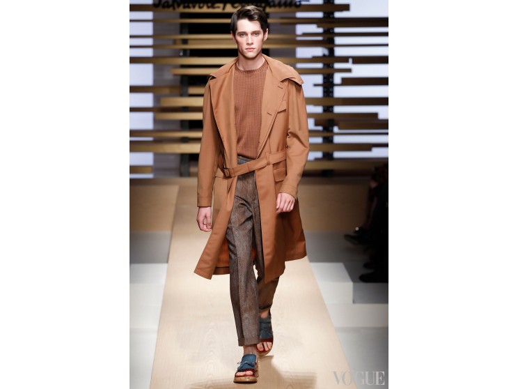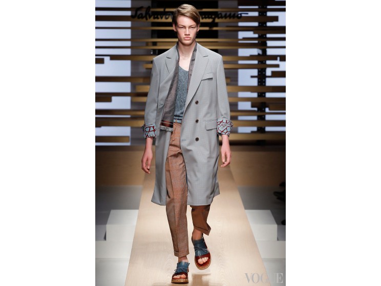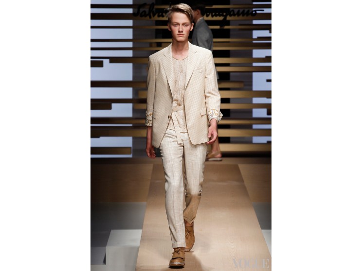 Пока другие дизайнеры пытаются удивлять публику на показах мужских коллекций, креативный директор Salvatore Ferragamo Массимилиано Джорнетти отдает предпочтение более спокойным образам и для следующего лета предлагает мужчинам выбрать легкие костюмы песочных и холодных лавандовых оттенков.