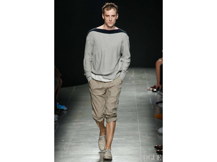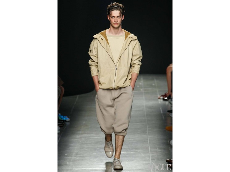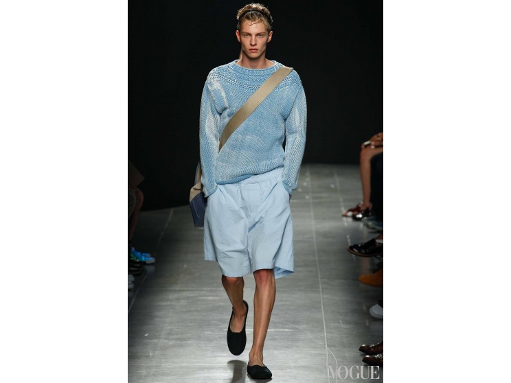За расслабленный стиль голосует и Томас Майер из Bottega Veneta. Правда его мужская коллекция больше посвящена танцовщикам, а не отчаянным путешественникам. Его парни выбирают трикотажные и не стесняющие движений укороченные лосины или широкие шорты, к которым подбирают не менее мягкие пуловеры и расстегнутые на несколько пуговиц майки.