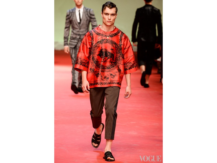 Дизайнеры перенесли на свою одежду все самые популярные испанские символы, выбрав центральным персонажем разъяренного быка. Кроме него в коллекции читались отголоски костюмов танцоров фламенко и тореадоров, а закрылся показ чередой точно скроенных костюмов всех оттенков красного – от кроваво-бордового до ярко-алого.