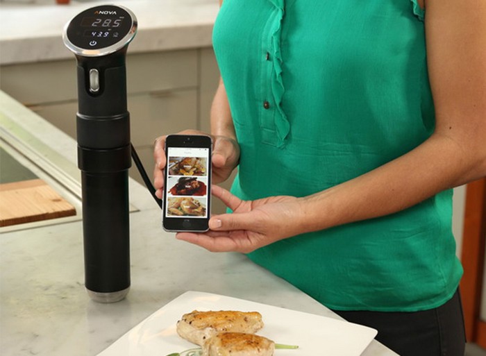 Anova Precision Cooker – это первое подобное устройство для домашнего использования. Он значительно ускорит и упростит процесс готовки самых изысканных блюд. Более того, управлять данным девайсом можно при помощи смартфона iPhone, выставляя на нем настройки приготовления пищи, а также контролируя этот процесс нажатием кнопок на сенсорном экране.