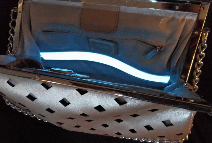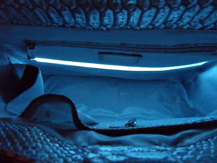 Например, женская сумка Glass Handbag легко отдаст хозяйке спрятанные в ней телефон, губную помаду, зеркальце или ключи от квартиры. А все потому что внутри этого модного изделия находится специальная светодиодная подсветка, которая включается всякий раз, когда девушка открывает данный аксессуар. Питаются эти лампочки от встроенного в сумочку аккумулятора.