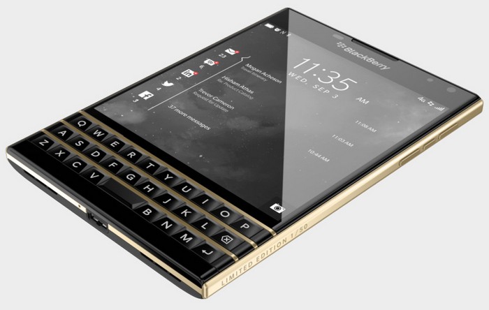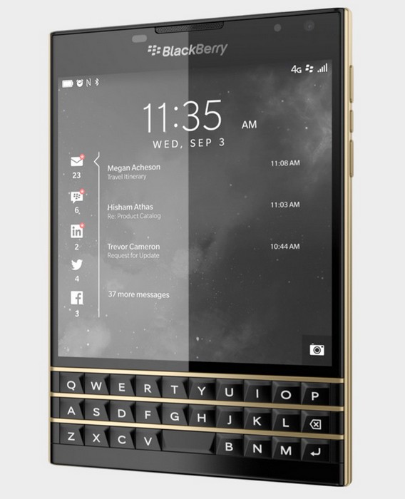 Золотой смартфон Blackberry Passport для стильных бизнес-леди