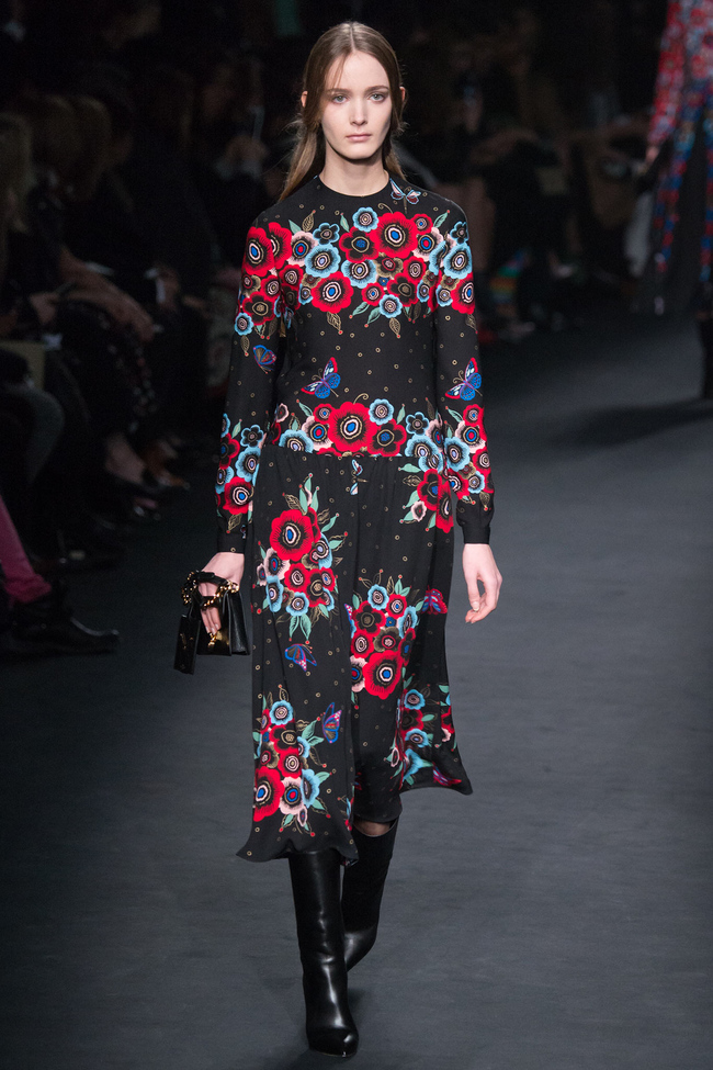 Несмотря на ажиотаж в социальных сетях, который вызвало появление актеров в финале шоу, сама коллекция заслуживает не меньшего внимания. Мария Грация Кьюри и Пьер Паоло Пиччоли посвятили ее сразу двум женщинам – Эмилии Флёге, дизайнеру и возлюбленной Густава Климта, и Селии Биртуэлл, жене Оззи Кларка и музе художника Дэвида Хокни. Причем с Биртуэлл марка Valentino уже сотрудничала ранее – она разрабатывала принты для последней межсезонной коллекции.