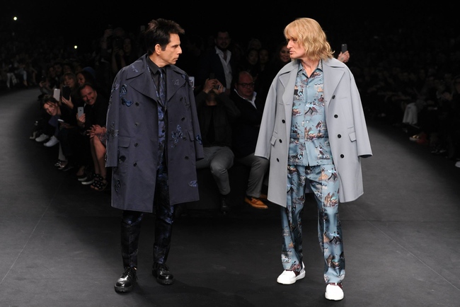 Не успела публика позабыть шок от нового оттенка волос Ким Кардашьян, которая перебрала на себя все внимание на показе Balmain, как главным впечатлением от шоу Valentino стал выход на подиум героев фильма “Образцовый самец” Дерека Зуландера и Хэнзела Макдональда, роли которых исполняют голливудские комики Бен Стиллер и Оуэн Уилсон.