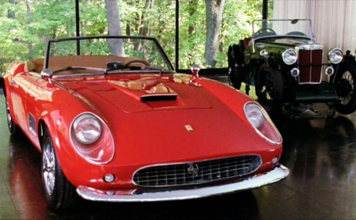 Возможно, автомобиль Феррари 250 GT Калифорния 1961 и не планировался для съемок в кино, но так получилось, что он оказался машиной отца Кэмерон в фильме «Выходной день Ферриса Бьюллера». Феррари – достаточно дорогой автомобиль, в то время он стоил 350 000 долларов, и съемочная группа снимала его только, когда он стоит. В тех эпизодах, когда автомобиль едет, падает из окна и переворачивается, снимали копии. Сегодня цена автомобиля 10 млн долларов.