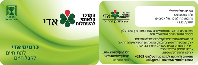 Оформить карту донора «Ади» может каждый израильтянин, начиная с 17 лет.