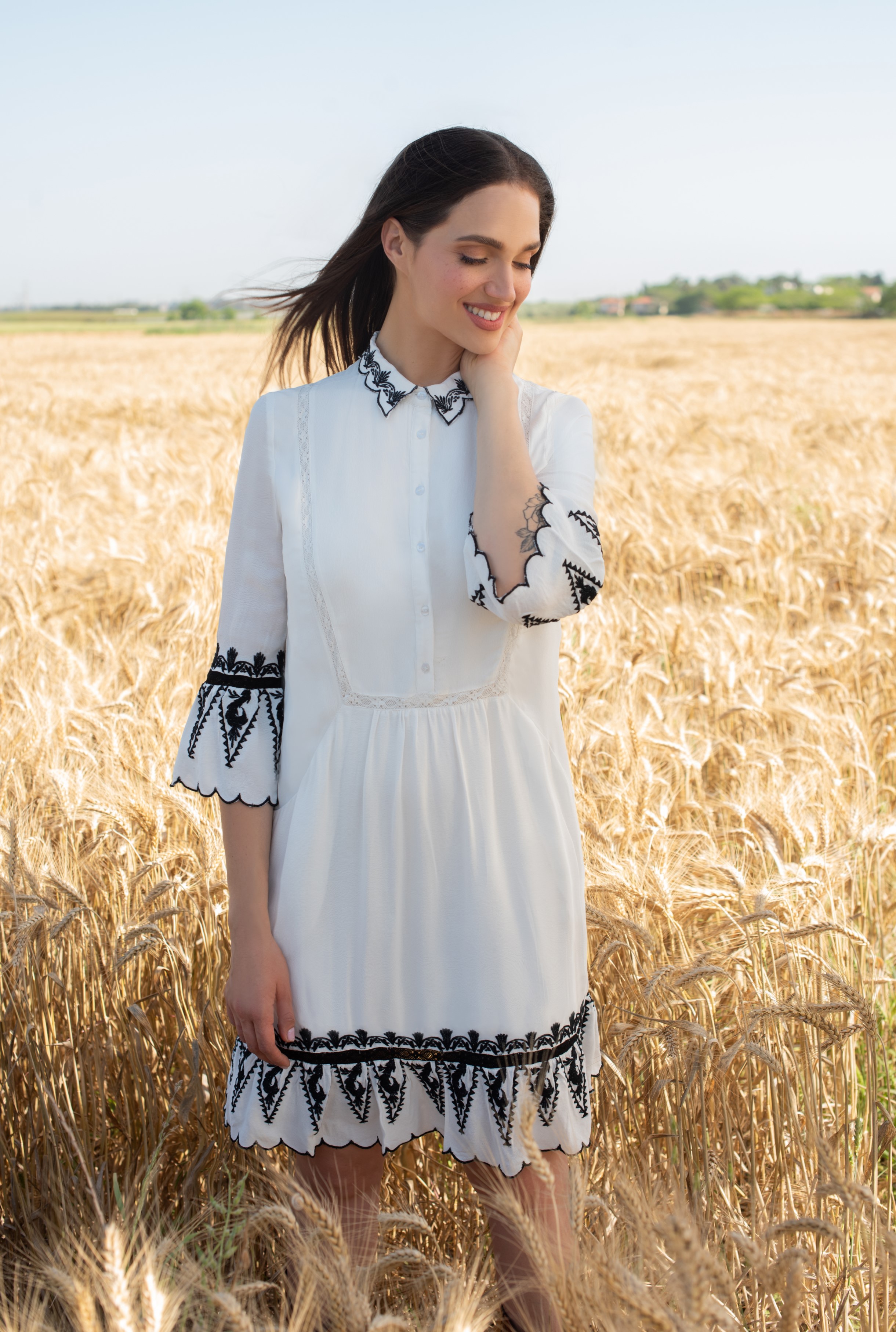 Летящие ткани, широкие рукава, декор вышивкой или лентами и стиль, напоминающий деревенский, – платья, будто «из бабушкиного сундука», особенно актуальны несколько последних сезонов. Нежная и лаконичная вариация тенденции от Crazy Line покоряет с первого взгляда, в нем сочетается деревенский винтаж и европейский шик. Абсолютно женственное, без лишнего декора и кричащих деталей, очаровательное до последнего шва – оно будет одинаково актуально и за праздничным столом и в повседневной жизни.