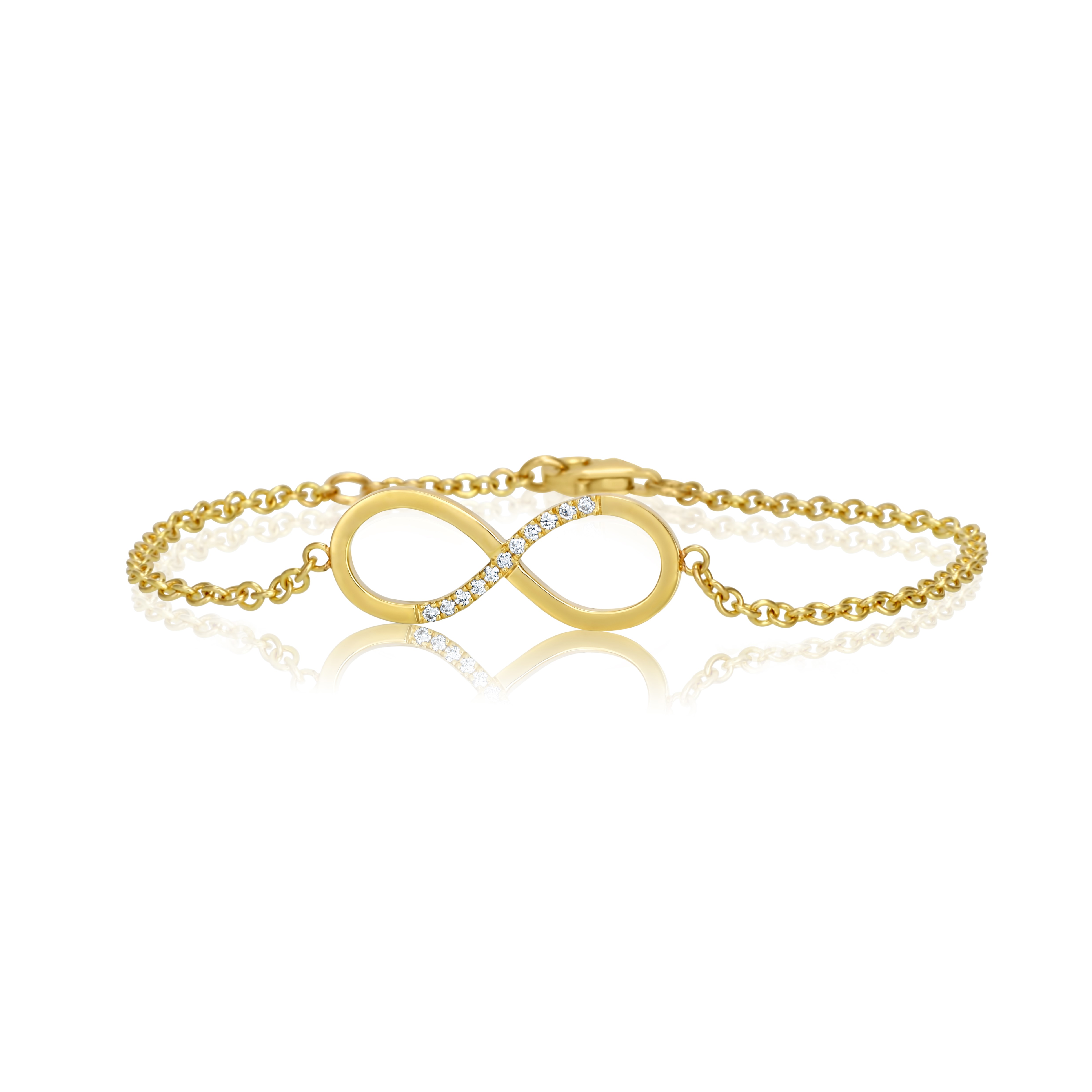 Бесконечность – это не просто математический знак, он имеет глубокое символическое, а порой и магическое значение. Он трактуется и как бесконечность бытия, и как движение вперед и стремление к совершенству и идеалу, и даже как символ вечной любви и верности. Эзотерики считают, что он обладает очень сильной энергетикой, поэтому не удивительно, что талисманы со знаком бесконечности пользуются популярностью во многих странах. Кулон из желтого золота с бриллиантами 0.24 карат. Цена 2000 шек.