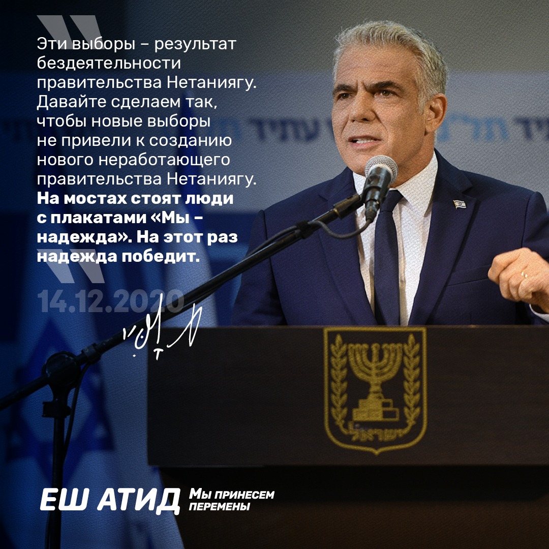 Эти выборы – результат бездеятельности правительства Нетаниягу. Давайте сделаем так, чтобы новые выборы не привели к созданию нового неработающего правительства Нетаниягу.