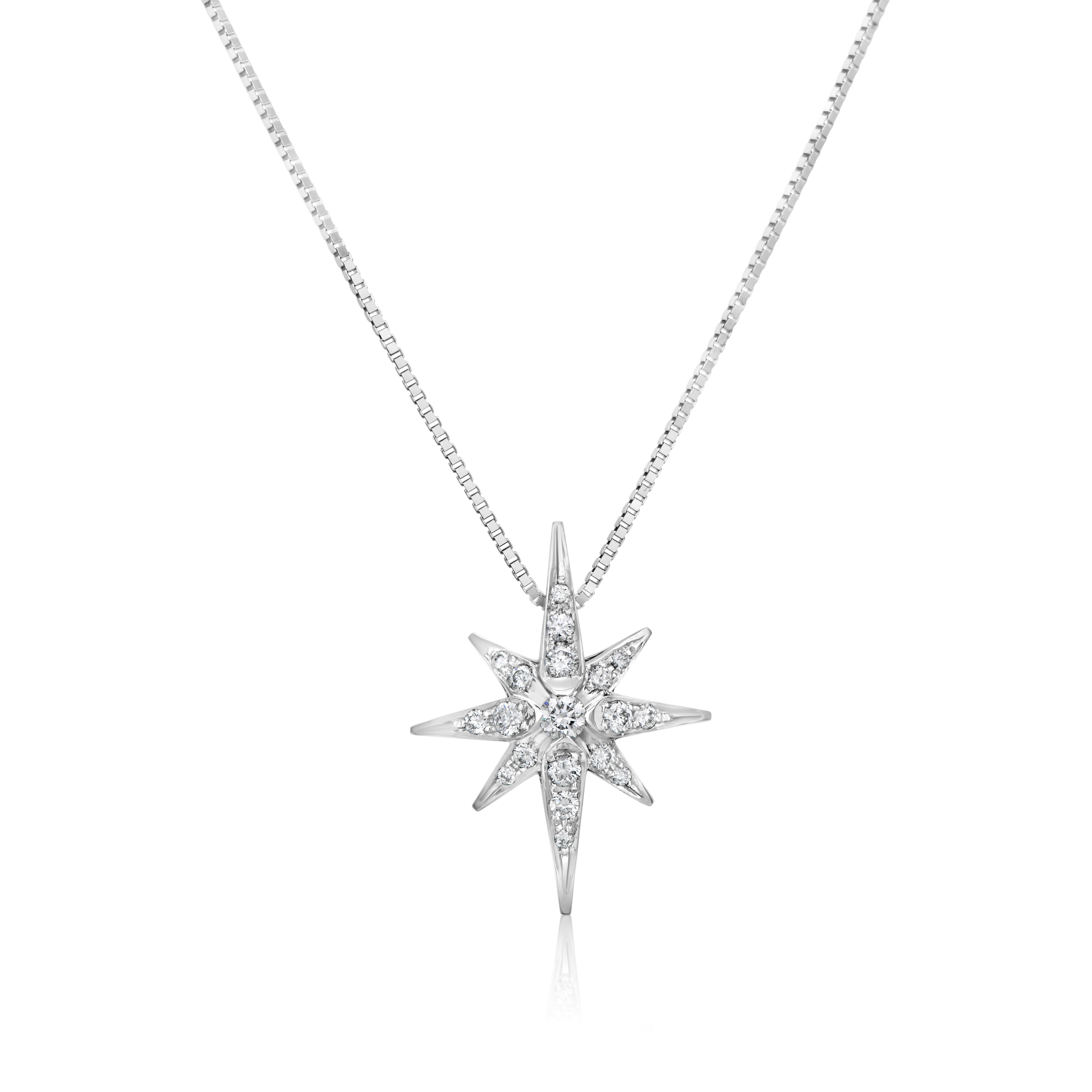 Восьмиконечная звезда – это символ, который существует во многих культурах, в том числе и в иудаизме – это знак начинания, спасения, изобилия. Как магический амулет он приносит своему обладателю вдохновение и развитие творческих способностей, владеющие им становятся хозяевами своей судьбы и приобретают силу управлять ею. Пожалуй, именно этого каждый из нас хочет пожелать себе и любимым в новом году. Кулон из белого золота с бриллиантами 0.40 карат. Цена 2500 шек.