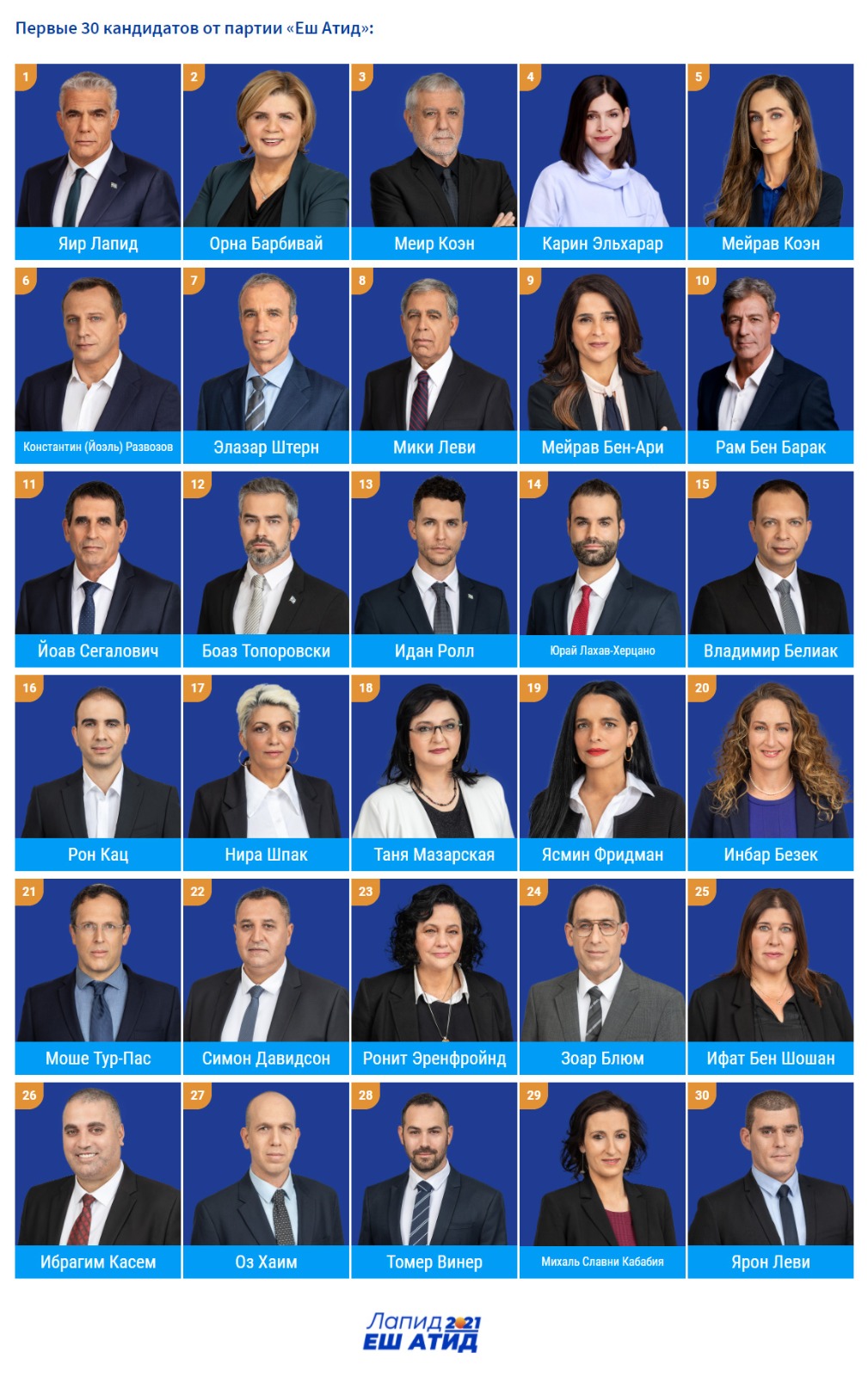 «Еш Атид» – единственная несекторальная партия, в списке которой есть три русскоязычных кандидата на реальных местах.