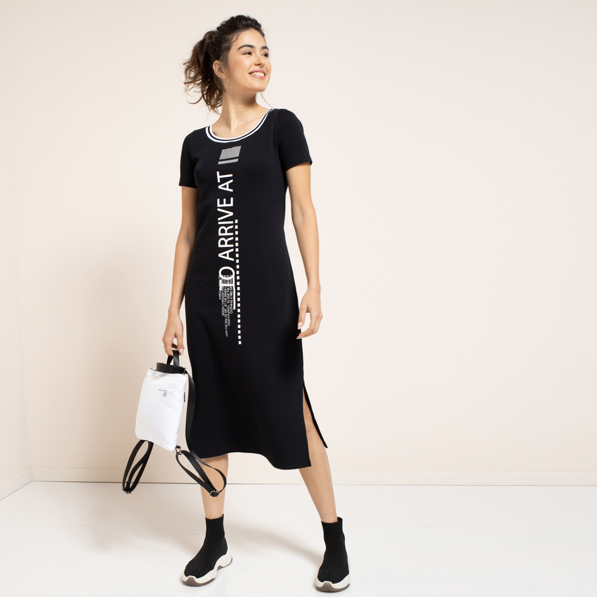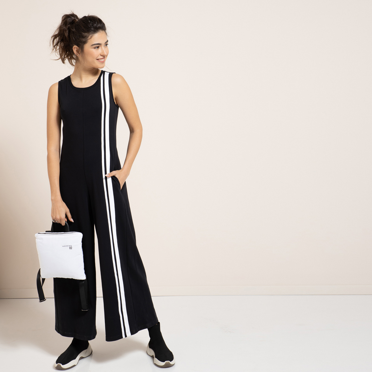 В основе коллекции разнообразные модели платьев, футболок, брюк в черно-белой гамме, с элегантными графическими принтами. По настроению дизайн близок к стилю колор блок, который предполагает составление комплектов из двух-трех контрастных и доминантных цветов. Четкость, минимализм и симметрия – вот три кита, на которых опирается философия каждой вещи. В капсуле отчетливо прослеживаются тренды. Например, мода на лампасы, которые не покидают глянец и светские хроники. Контрастные полоски прекрасно чувствуют себя на свободных мягких брюках, задавая образу темп. Все предметы в коллекции обладают идеальной сочетаемостью друг с другом. Причем, лаконичные по отдельности, в комбинациях они могут создавать как спокойные, так и громко говорящие образы.