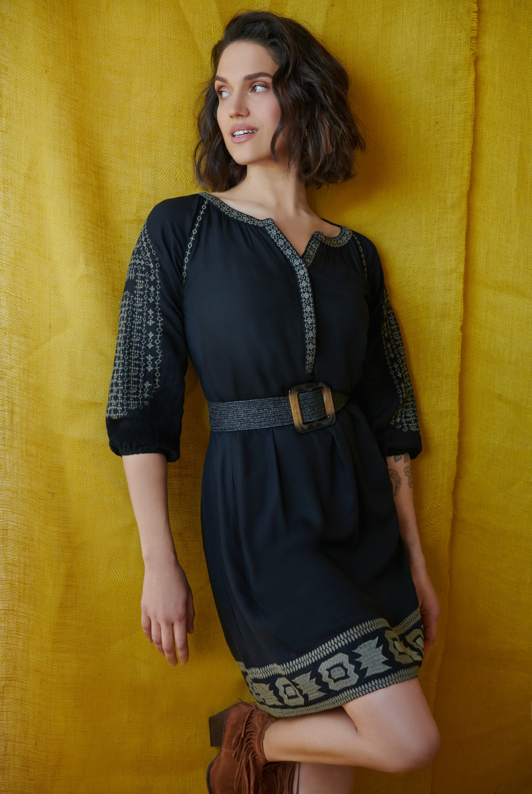 Это такая классика, без которой не обходится практически ни один гардероб, тем более, что современная мода намного более демократична, чем она была во времена незабвенной Коко Шанель и маленькое черное платье может быть любым: с воротником, оборками, кружевами и другими всевозможными декоративными элементами. В коллекции Crazy Line вы можете найти эталонное черное платье с изюминкой – орнамент, отсылающий к этническому стилю, придает ему шарм и невероятную женственность. Идеальное платье для городских прогулок и камерных вечеринок.