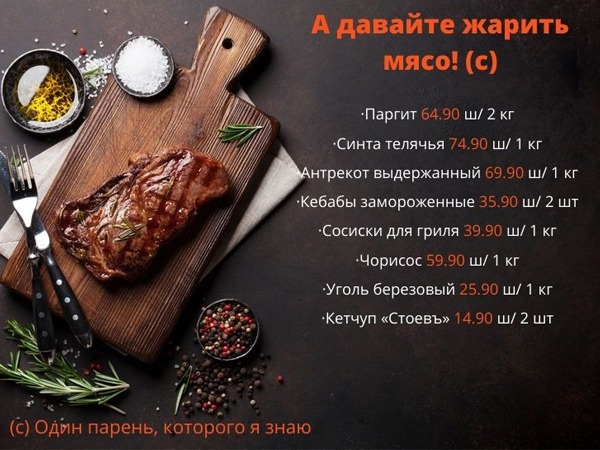 - Антрекот выдержанный 69.90 ш/ 1 кг