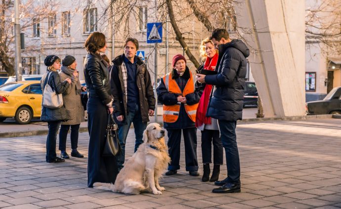 В ролях: Юлия Мельникова, Дмитрий Ратомский, Сергей Громов, Михаил Евланов, Борис Щербаков, Алена Новицкая и другие артисты, а еще два золотистых ретривера – Тим и Крис.