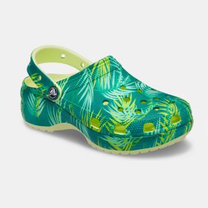 Стоит лишь мельком взглянуть на тропическую коллекцию – и немедленно хочется в отпуск, на далекие острова, лежать под пальмой в гамаке, попивая кокосовое молоко и покачивая ногой, обутой в крокс с зеленым тропическим принтом. Клоги, вьетнамки, шлепки, сабо – самые разные виды легчайшей обуви сделают это лето праздничным и полным приятных впечатлений.