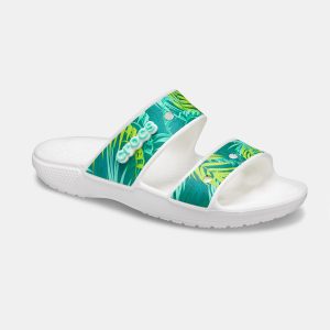 Кроме тропической линии Crocs этим летом выпустил коллекцию слайдов, клогов, сандалий и шлепанцев для всей семьи с новыми силуэтами и красочными принтами «тай-дай», «мрамор», «тропики» и другими.