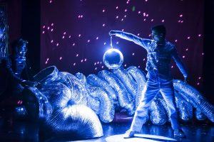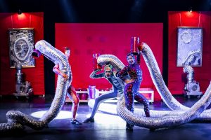 Шоу «Алюминий» – интерактивный спектакль, алюминиевые скульптуры спускаются со сцены в зрительный зал, да еще и разрешают детям заглянуть внутрь алюминиевых труб, играть на них и с ними, танцевать с ними и внутри них, а затем подняться вместе с алюминиевыми героями на сцену.
