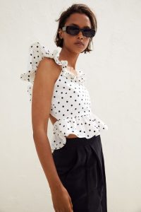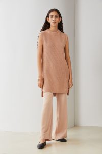 К ключевым предметам коллекции относятся: рубашка с цветочным рисунком и отложным воротником, который придает ей романтичный вид, вязаные безрукавки из переработанного полиэстера, которые будет хорошо сочетаться с рубашкой на пуговицах и платьями, для создания законченного образа или в качестве интересного элемента многослойного “лука”.
