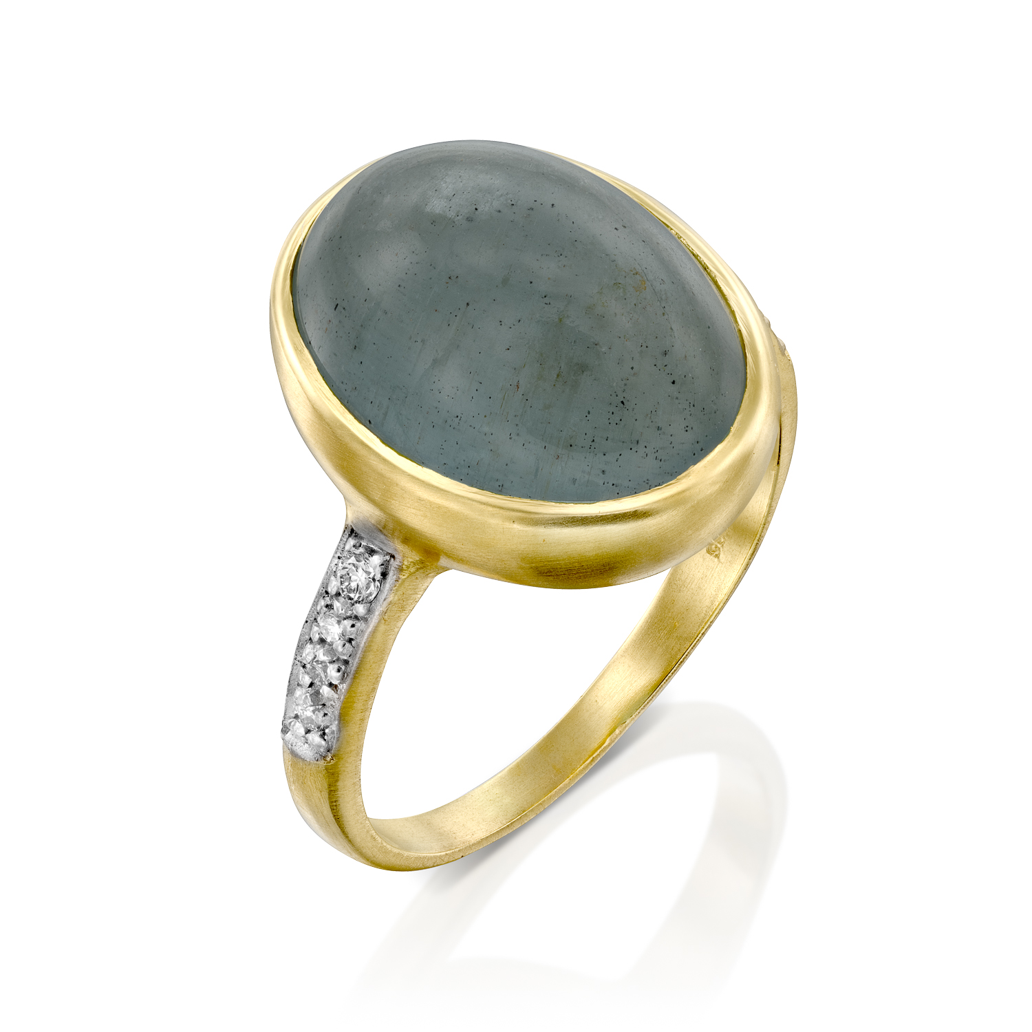 Дизайнеры ювелирной сети «Бурса ле-Тахшитим» обрамили волшебный аквамарин в желтое и белое золото и классические бриллианты, чтобы подчеркнуть его особенный цвет и свечение.