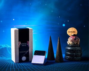 Новое мороженное GOLDA Galaxy Z сопровождается хрустящими рожками черного цвета, с добавлением какао и будет доступно во всех 100 филиалах сети Golda по всей стране, начиная с 19 сентября.