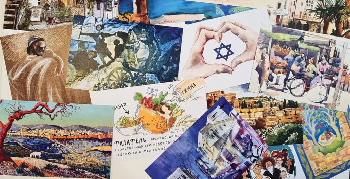 Выставка, которая скоро откроется в иерусалимской галерее Skizza, и наборы открыток позволяют нам увидеть, как по-разному выглядит Израиль в глазах 36 художников, родившихся в Советском Союзе и в странах постсоветского пространства. Для кого-то из них изобразительное искусство – это профессия, для иных – хобби. Авторы изображений принадлежат к разным поколениям, от подростка до людей преклонного возраста. Одни приехали недавно, другие прожили в Израиле многие десятилетия. И у каждого есть что-то свое, неповторимое, чем он может и хочет поделиться.