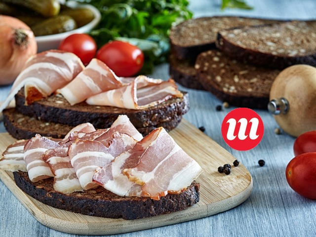 Тем, кто бывал в Прибалтике, наверняка полюбился знаменитый латвийский ржаной хлеб Рупьмайзе – «тот самый» хлеб, ставший известным далеко за пределами Латвии. Его пекут в семейной пекарне, расположенной в небольшом латвийском городке по старинным рецептам. Возьмите аппетитный бекон «Мания», любую из наших пастрам или колбас, и положите ее на смазанный майонезом, горчицей или чесночным соусом ржаной хлеб! Украсьте тонко порезанным соленым огурчиком или зеленью.