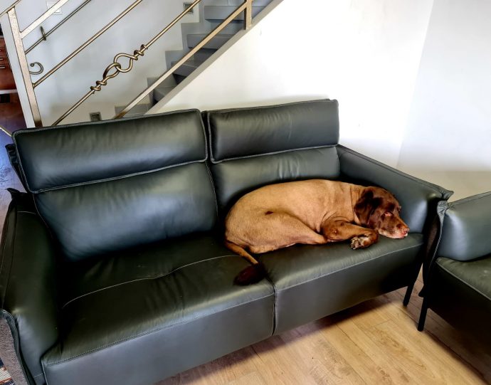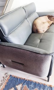«На днях мы поменяли старый диван. Привычный, удобный, но давно уже весь разодранный собакой – его давно уже пора было выбросить. А тут как раз черный ноябрь: до 50% скидки в Rest&Relax. Новый диванчик обошелся нам гораздо дешевле, чем мы рассчитывали. Можно сказать, это была спонтанная покупка: мы приценились и тут же решили – надо брать! Привезли нам диван очень быстро, буквально за пару дней. Наш барбос тут же его себе облюбовал в качестве спального места. Диван кожаный, собачью шерсть с него можно просто влажной тряпочкой собрать. Но особенно мы оценили эти текстильные бока! Сначала нам просто понравилось это стильное решение: комбинирование двух материалов в одном изделии. А потом мы поняли, что ведь это еще и функционально. Собаки, кошки, они же как раз эти бока и дерут, и если бока кожаные, то прощай диван! А тут использована специальная ткань, которую разодрать очень сложно. Это просто отличное решение для семей с питомцами!»