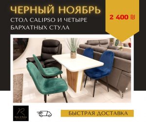 Стол Calipso и четыре бархатных стула украсят ваш дом всего за 2400 ш.