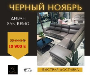 Солидный и вместительный кожаный диван San Remo со скидкой стоит 10 900 ш вместо 22 000.