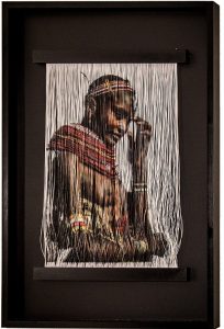 Изображения напечатаны на нитяном переплетении оригинальным методом, разработанным Зеэви. Выбор печати на органических нитях на ткацком станке вовсе не случаен. Зеэви долгое время искал “холст”, который лучше всего мог бы передать образы, сделанные в Африке до ускоренных процессов индустриализации. Органический материал и метод печати, включающий ручной труд, был разработан им, чтобы подчеркнуть суть его основной темы – пастухи, которые жили в саванне и пасли стада домашнего скота рядом с дикими животными, чей дом те же самые гранитные гряды и деревья акации.