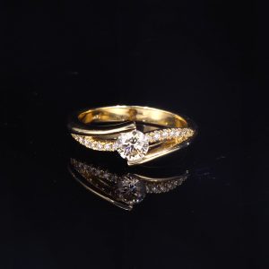 *Кольцо из желтого золота с центральным камнем 0.30 карат и бриллиантами по бокам 0.14 карат за 3180 шек. вместо 6680.