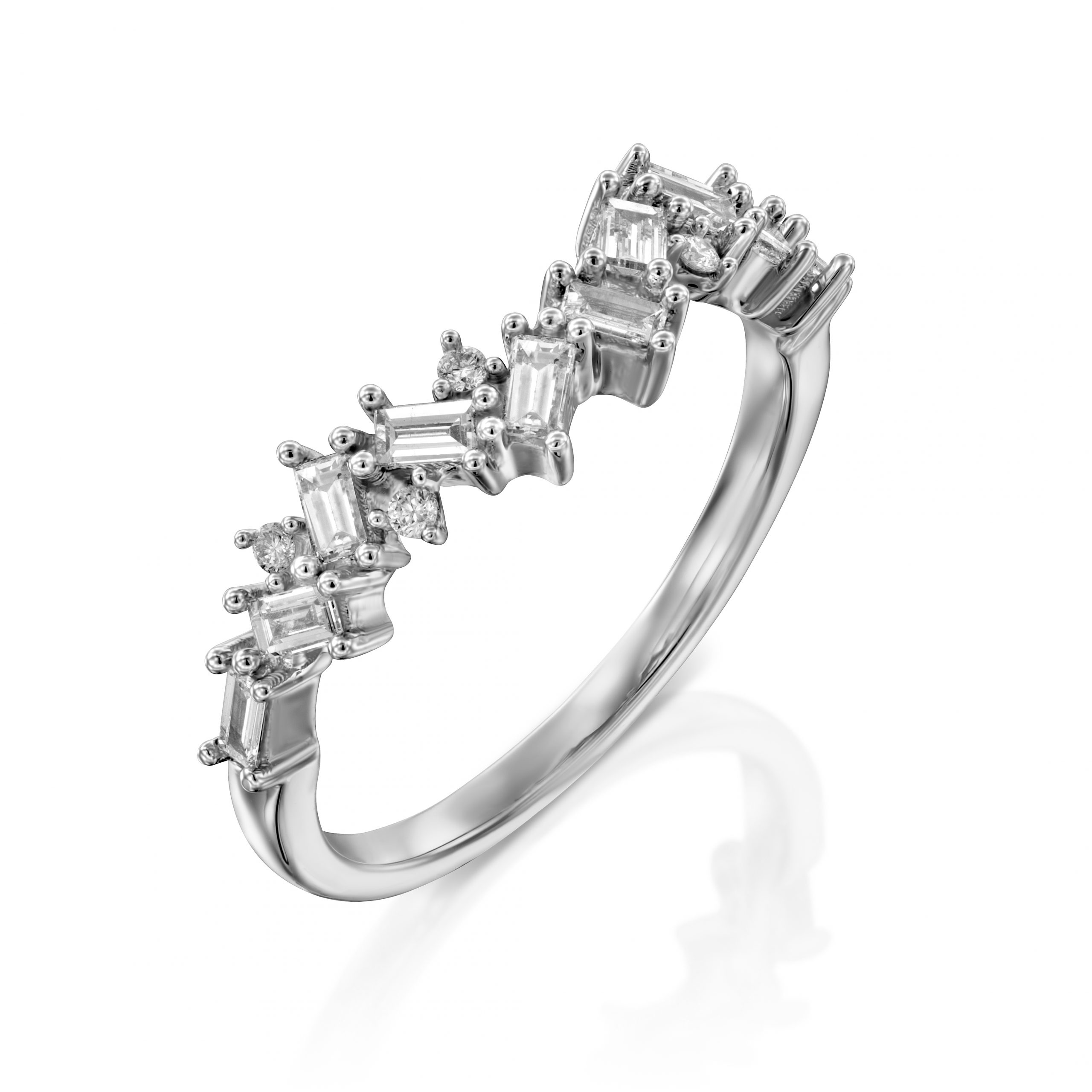 Дорожка из бриллиантов огранки «багет» будет освещать фронтальную сторону кольца, добавляя украшению поразительного сияния. Уникальный вид огранки позволяет создавать особенные ювелирные украшения, которые наверняка выглядели бы менее эффектно без яркой геометрии багетов. Кольцо с бриллиантами огранки «багет» подчеркнет ваш современный и уникальный вкус.