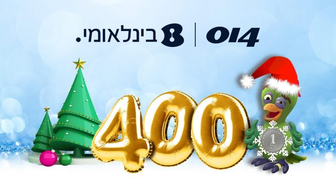 Близится Новый Год, один из самых любимых праздников. И в эти дни особенно приятно поздравить любимых и услышать их родные голоса! 014 Безек Бейнлеуми дарит клиентам 400 минут разговоров всего за 1 шекель.